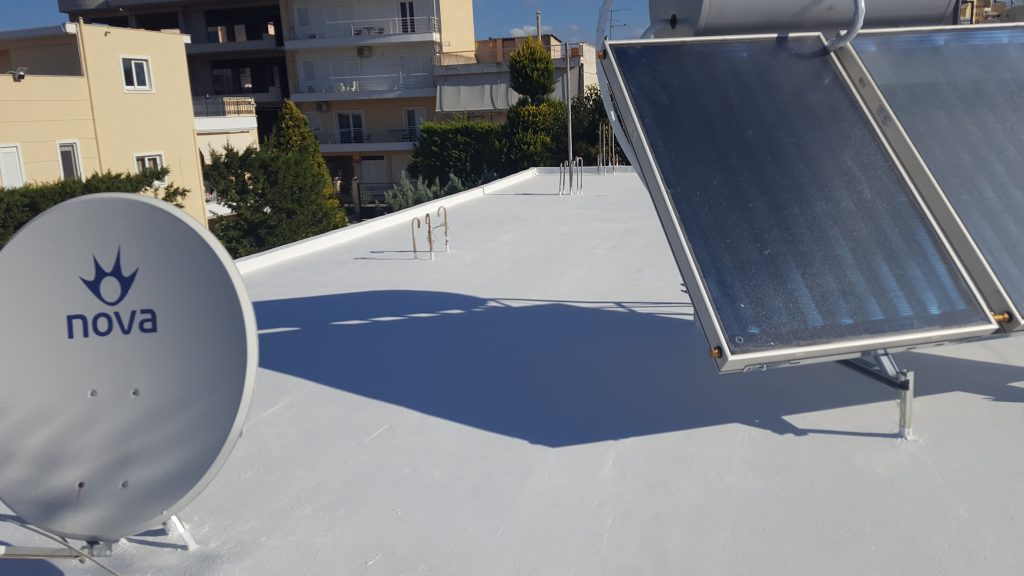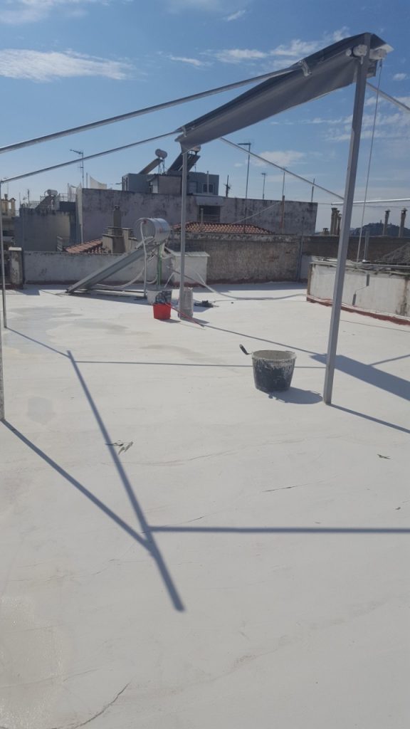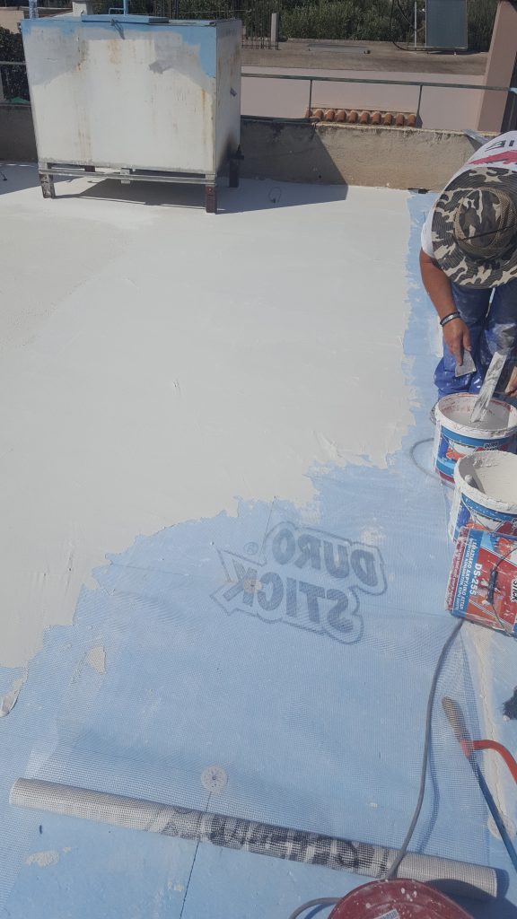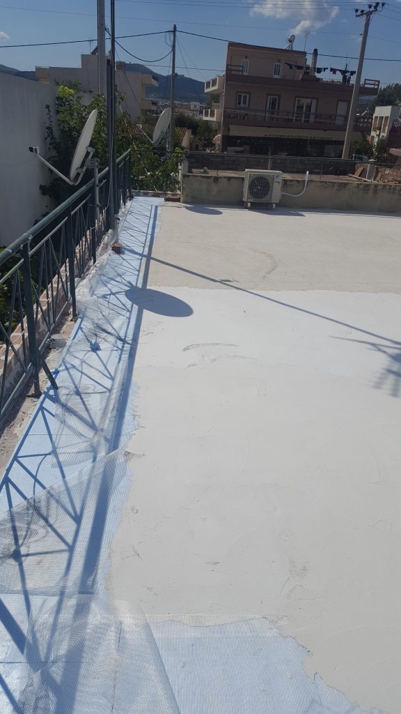 7. Τελική επίστρωση με Hydrostop Roof Εύκαμπτο, λευκό, τσιμεντοειδές στεγανωτικό ταρατσών.